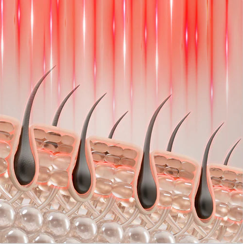 Mitokondriális Aktiváció (Sejtszintű energia): A vörös fény fotonjai behatolnak a fejbőrbe, és stimulálják a hajhagymák sejtjeiben található mitokondriumokat. Ez fokozza az ATP (sejtenergia) termelését, ami közvetlenül "felébreszti" a pihenő fázisban lévő hajhagymákat.