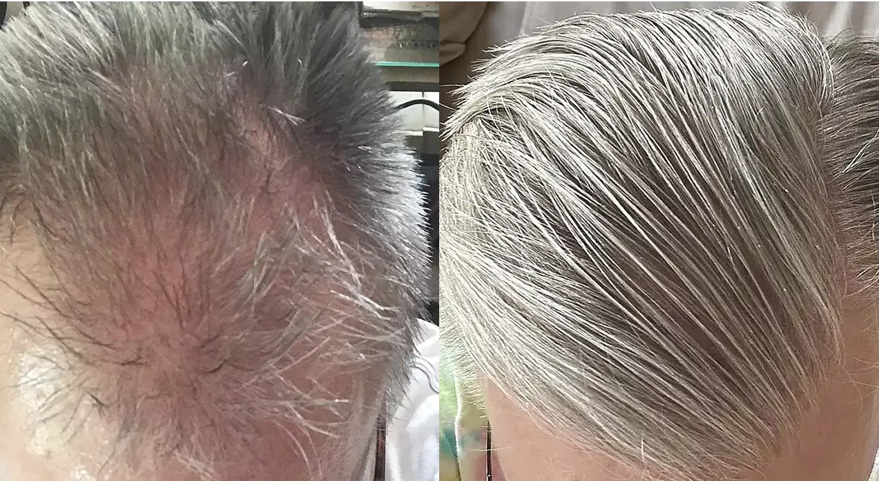 A fejtetőig terjedő férfias típusú hajhullás visszatöltődik a megerősdött hajszálakkal.
